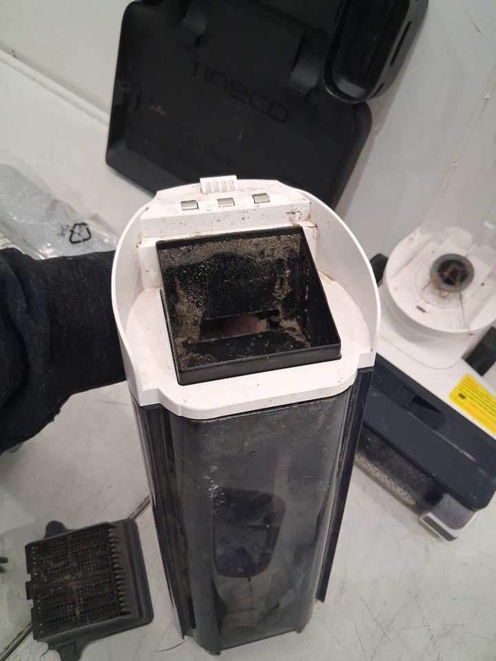 dust/dirt/water residue on vacuum and attachments from previous use, item was tested for power