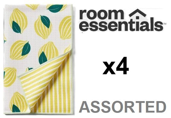 4 Room Essentials ASSORTED Quick Dry Reversible Hand Towels - 16" x 26" - ASSORTED COLOURS