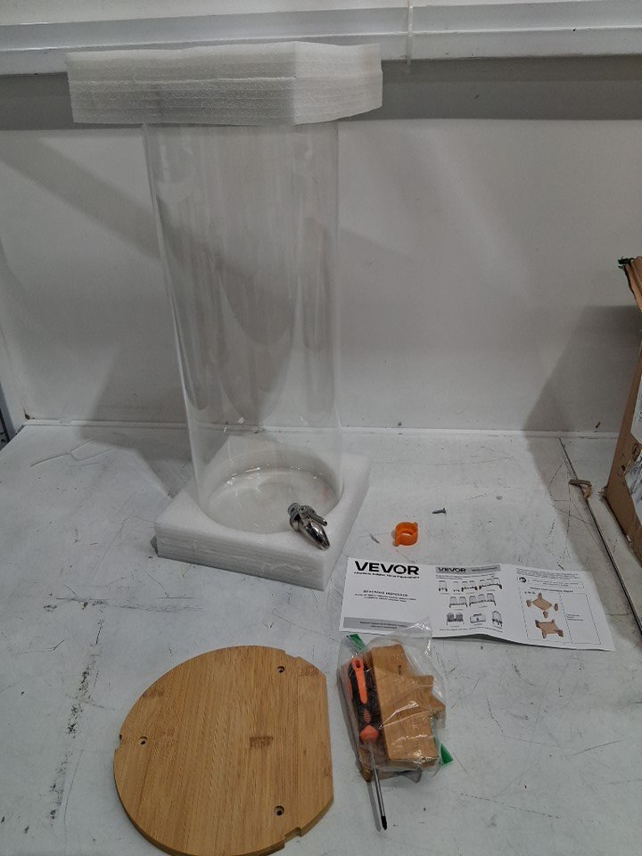 VEVOR glass beverage dispenser with bamboo stand - 3.5gal. capacity - clear/natural (model: gy-pg02)