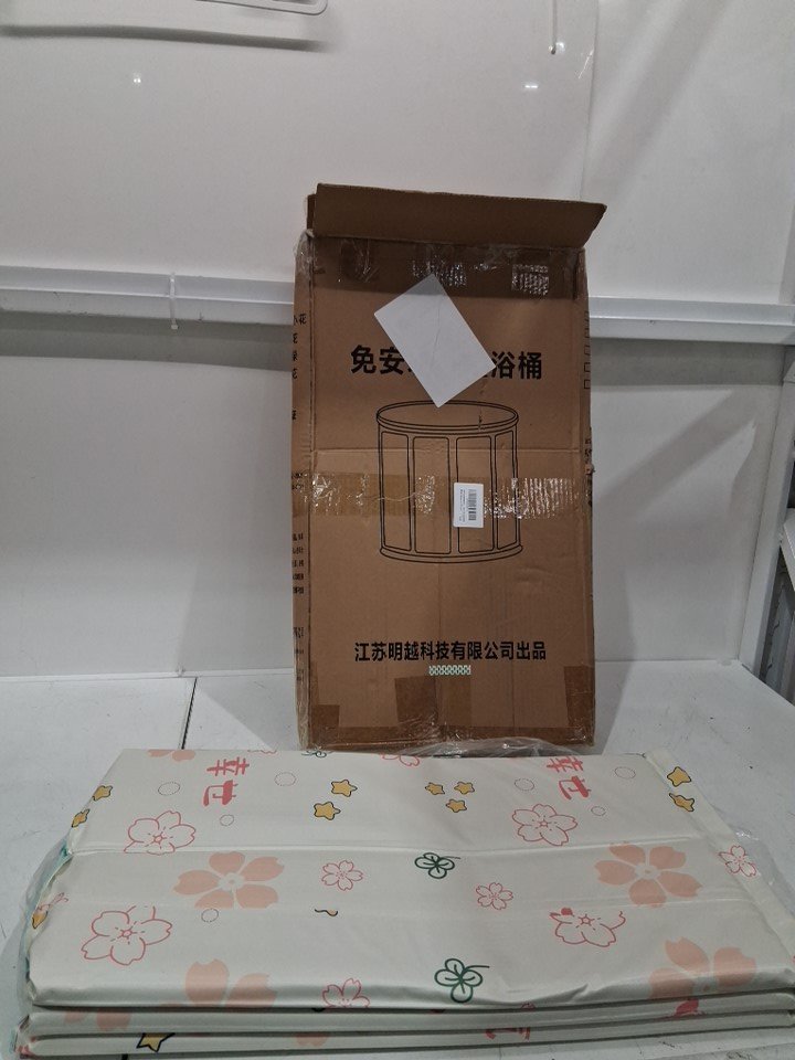 adult Foldable Portable Soaking Bathtub - 27.56" x 27.56" x 25.90" - beige/floral - (MODEL: ‎my7180)