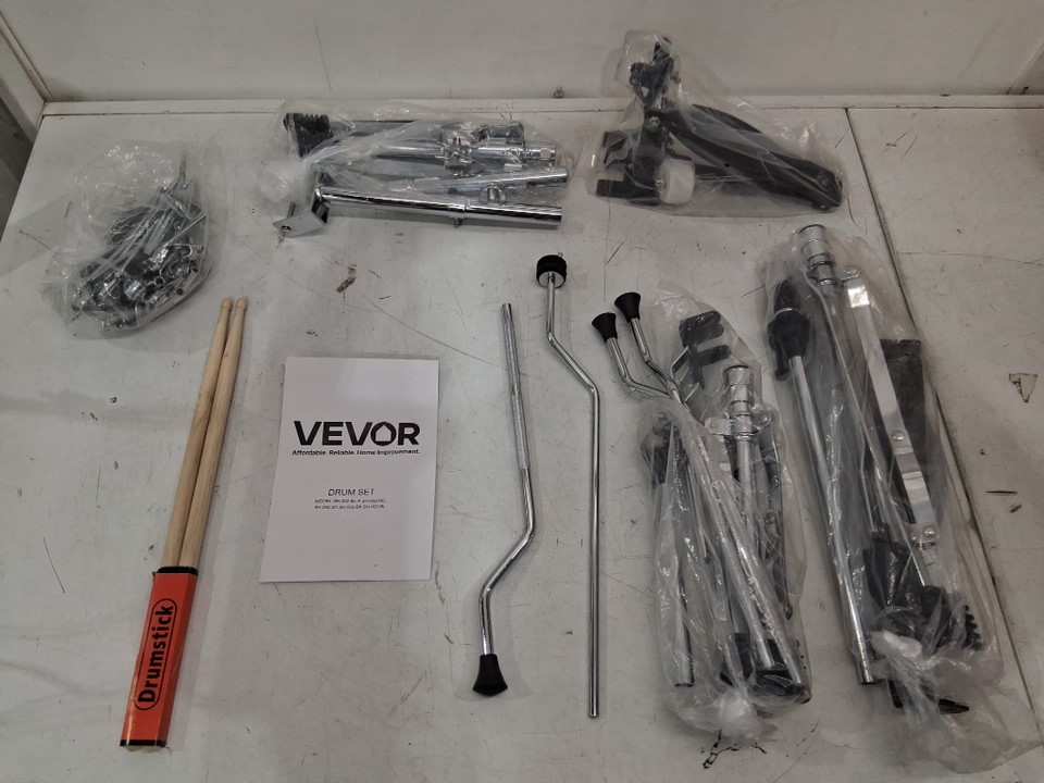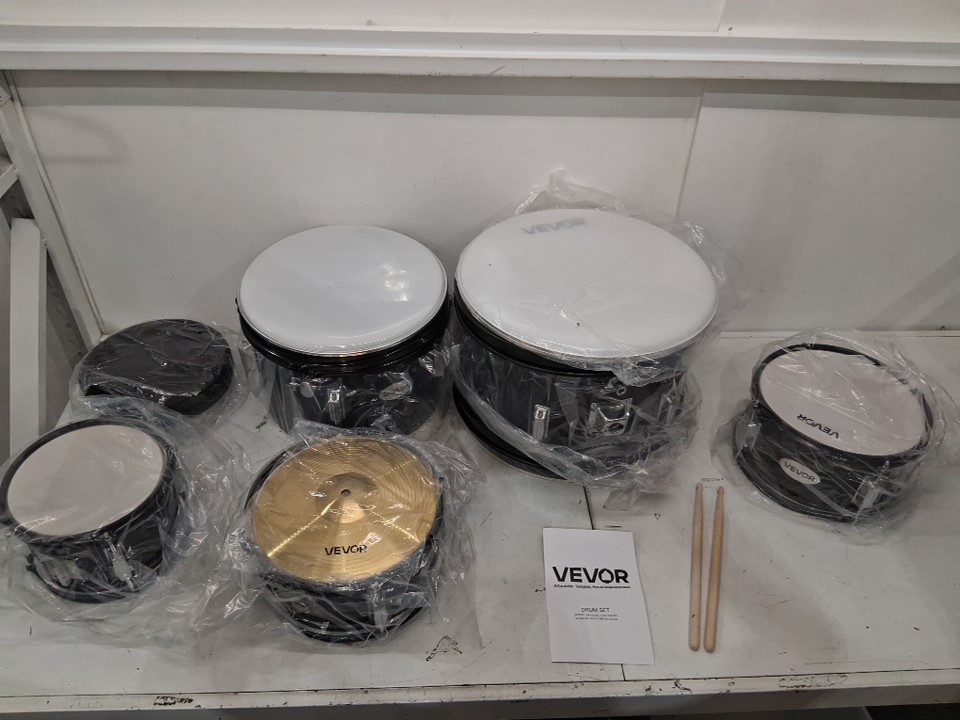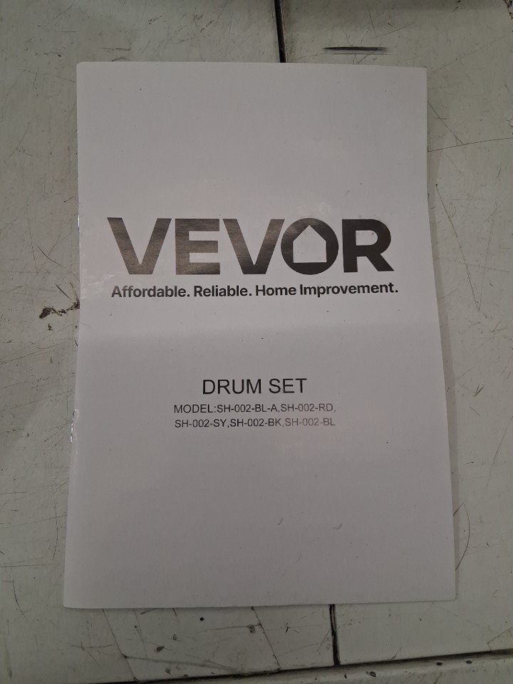 5pc kid's vevor beginners drum set - bass drum, toms , snare and cymbals - blcak/white (model: sh-002-bk)