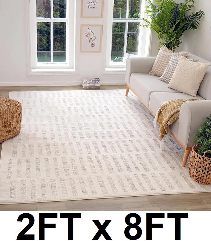 Tulum Geometric Indoor Area Rug- 2ft x 8ft - beige (model 2572 )