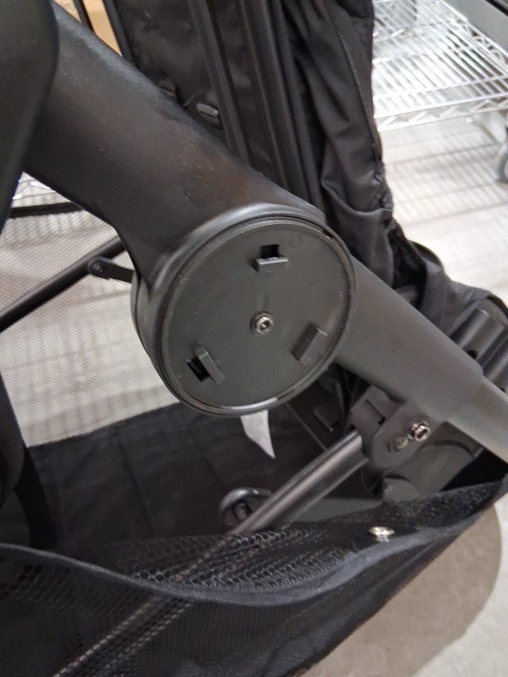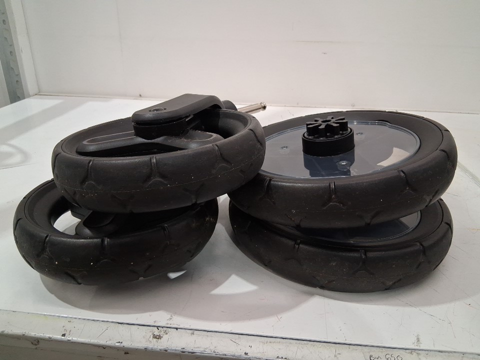 Item is missing one of the side caps. There is dirt/mild wear on the wheels indicating light use. See photos.