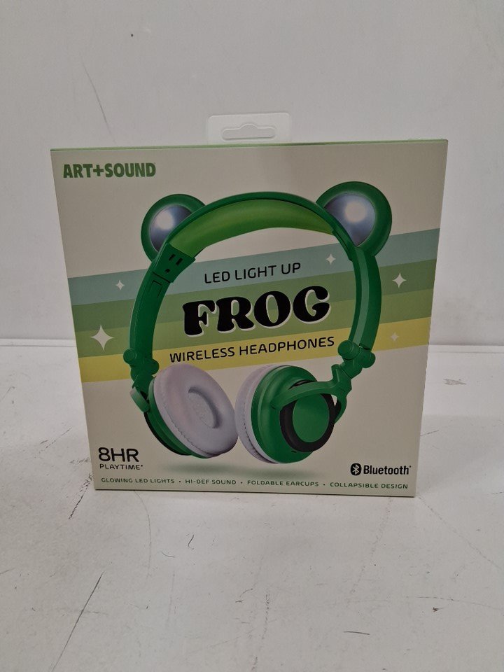 ART+SOUND LED Light Up Frog Bluetooth Wireless / Wired Headphones with Built-In Microphone - green
