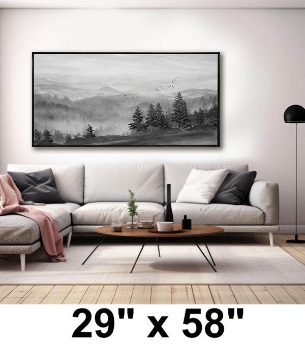 large landscape canvas wall art - 29" x 58" - black/white