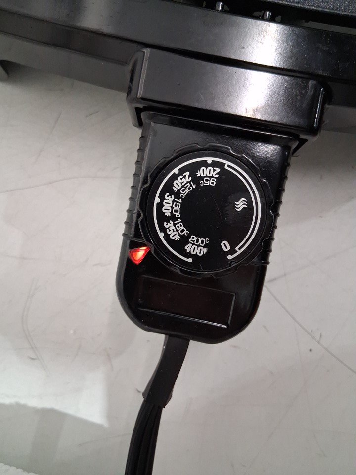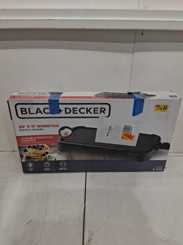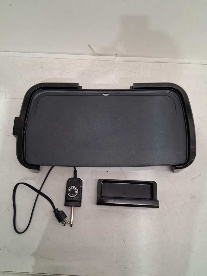 The griddle has some light use marks from previous use; it should look new after a quick cleaning. The griddle was tested for power.