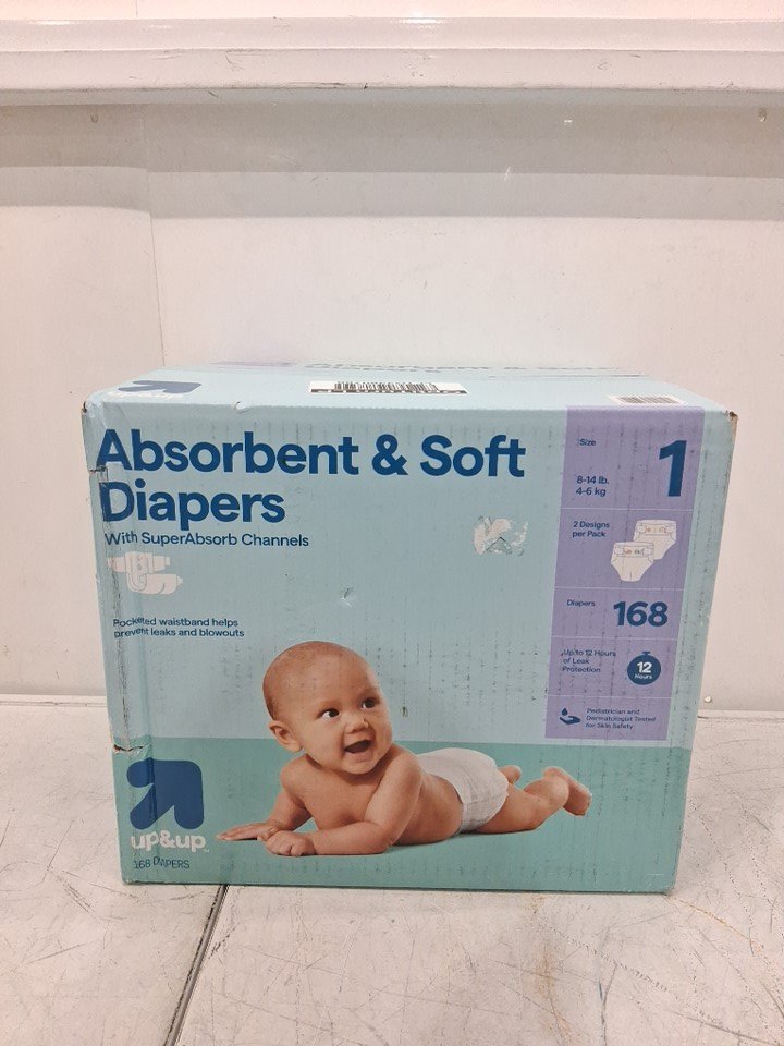 168pk up&up absorbent & soft disposable diapers - size 1