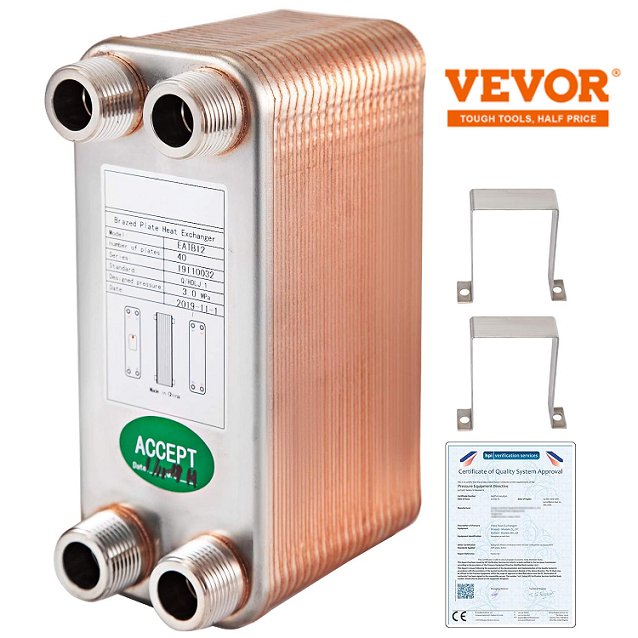 VEVOR Heat Exchanger 40 Plates Brazed Plate - 3"X7.5" (model:eatb12-40)