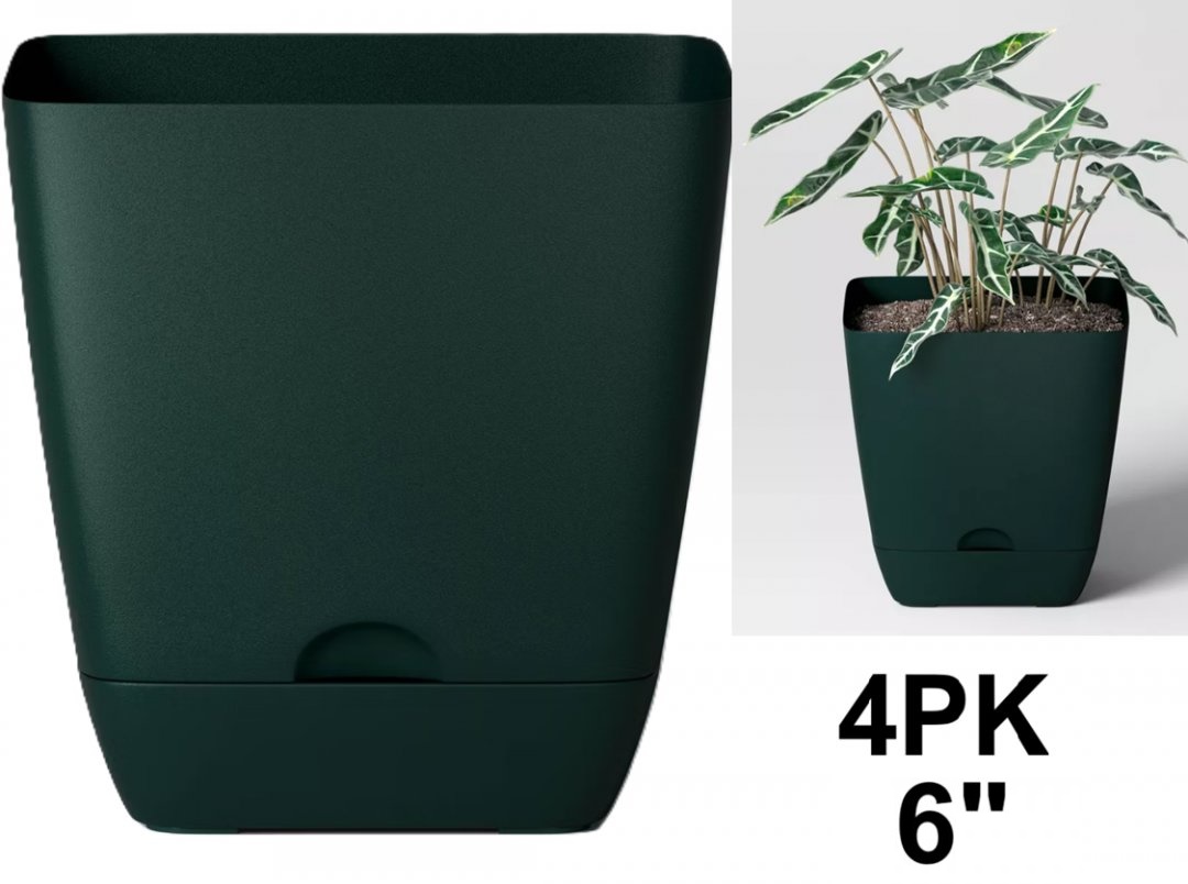 4PK Room Essentials Square Indoor-Outdoor Planter POT - 6" X 6" - GREEN