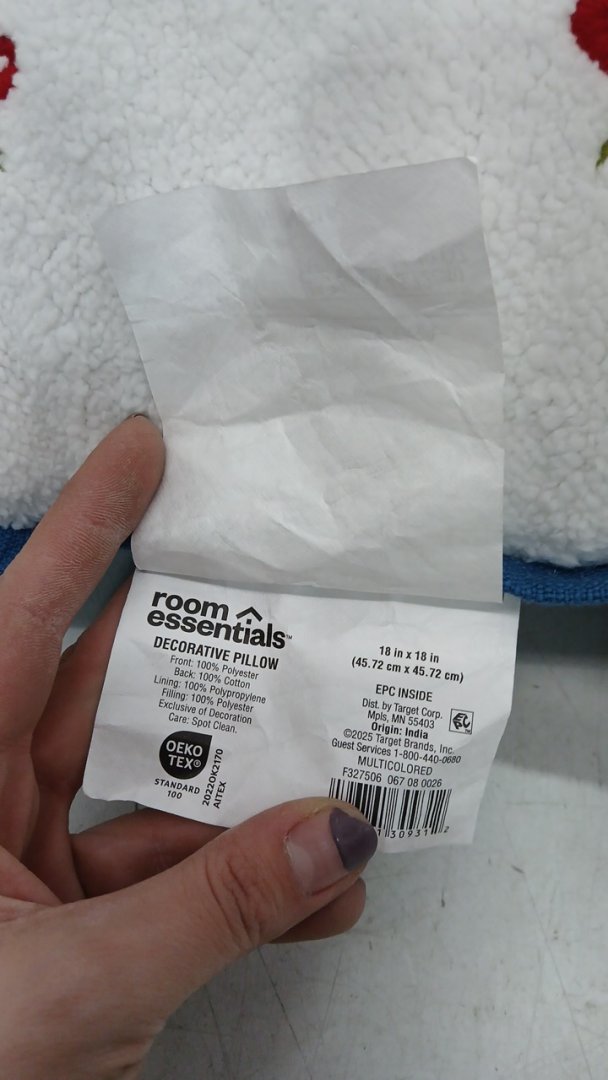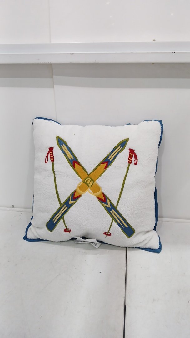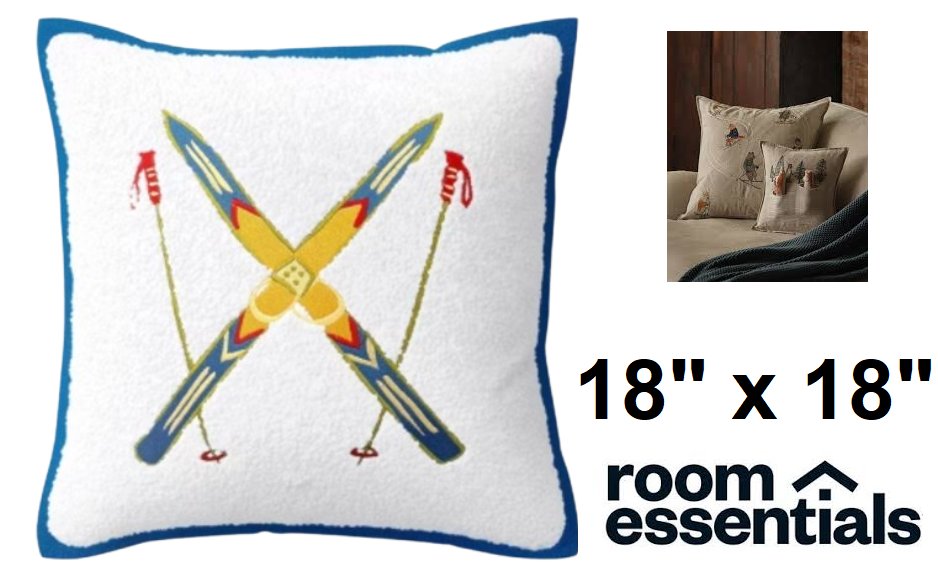 ROOM ESSENTIALS PLUSH DECORATIVE SQUARE THROW PILLOW - 18" X 18" - BLUE/WHITE SKI DESIGN