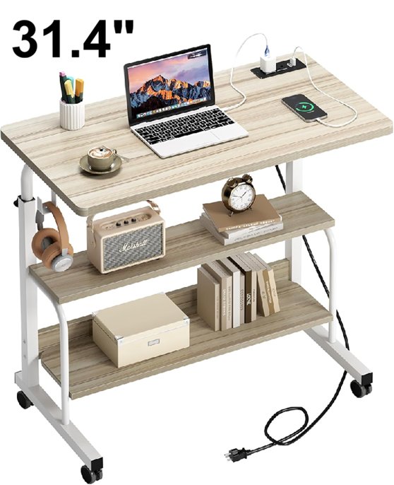soges Adjustable Mobile Computer Desk with Storage Shelves - 31.4" - white maple (model:‎10CZZS05-1-80-PRO)