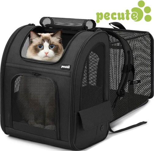 pecute expandable mesh pet carrier backpack with shade cover for pets up to 10kg - 19" x 16" x 11" - black
