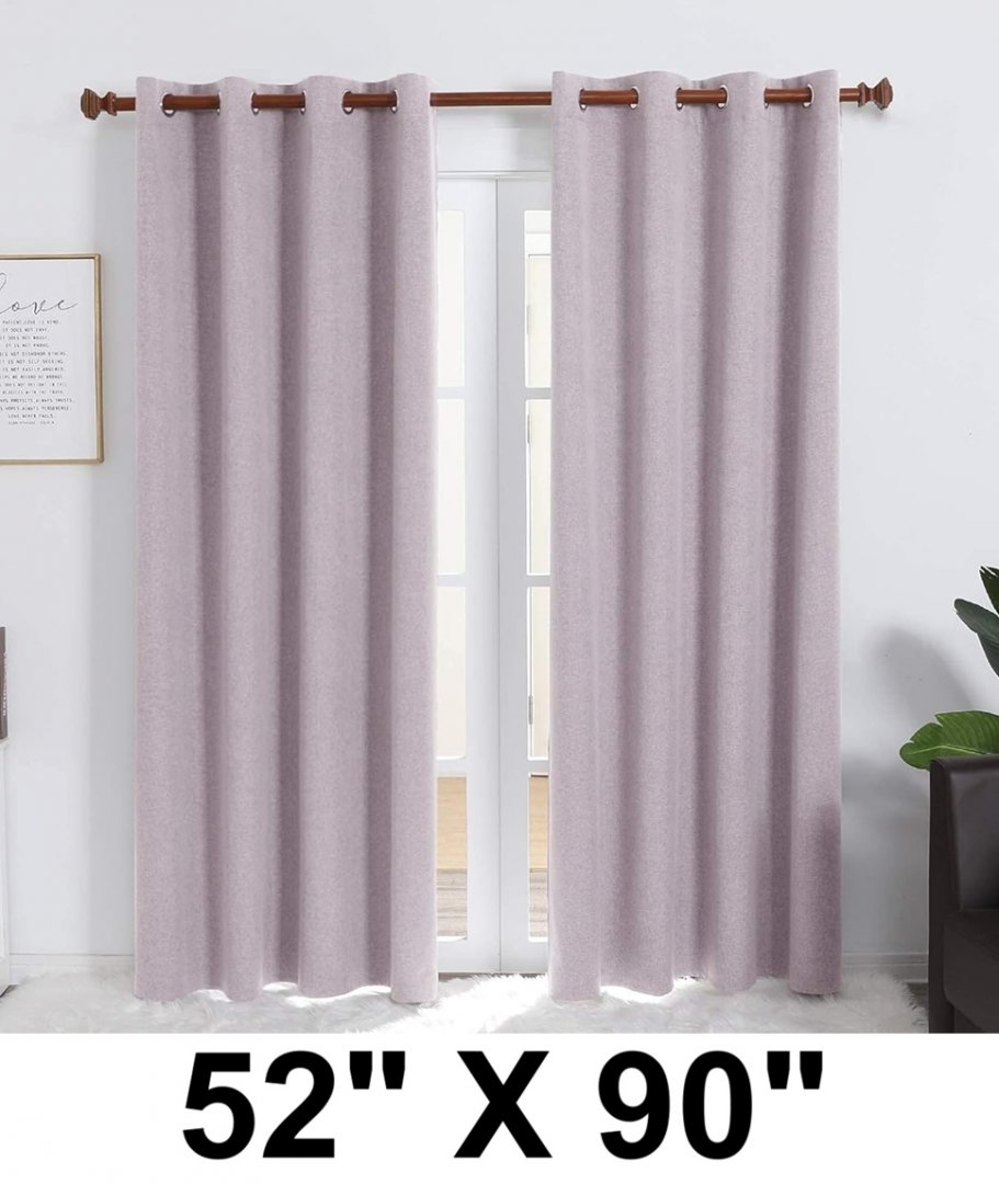 (2 PANELS) Deconovo Modern Grommet Linen Textured CURTAIN - 52" X 90" - LIGHT PINK