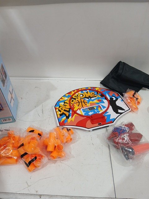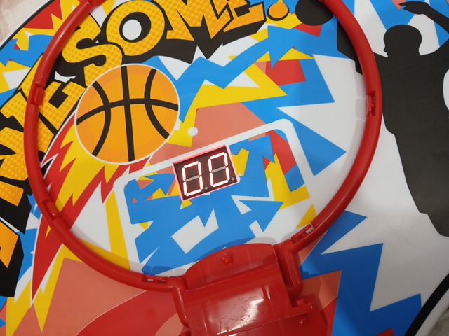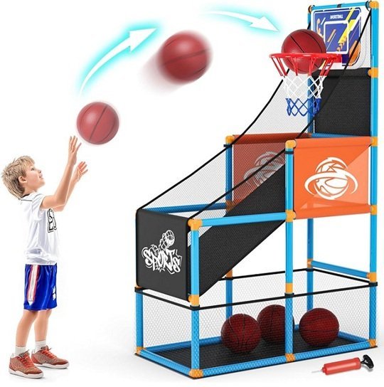 SYNCFUN LED Scoring Arcade Basketball Game Set with Electronic Scoreboard and Cheer Sounds, 4 Balls and Hoop Indoor Outdoor - Blue/Orange