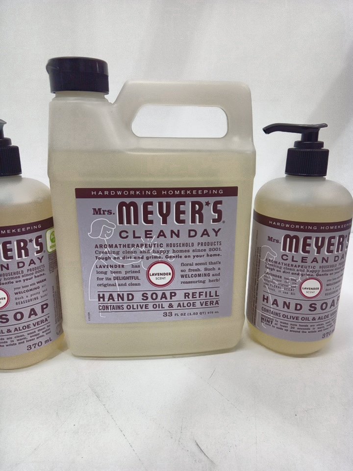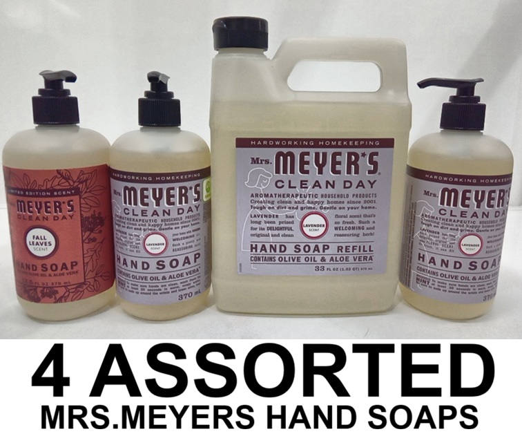 4 ASSORTED MRS.MEYERS' HAND SOAPS - ASSORTED SCENTS & SIZES