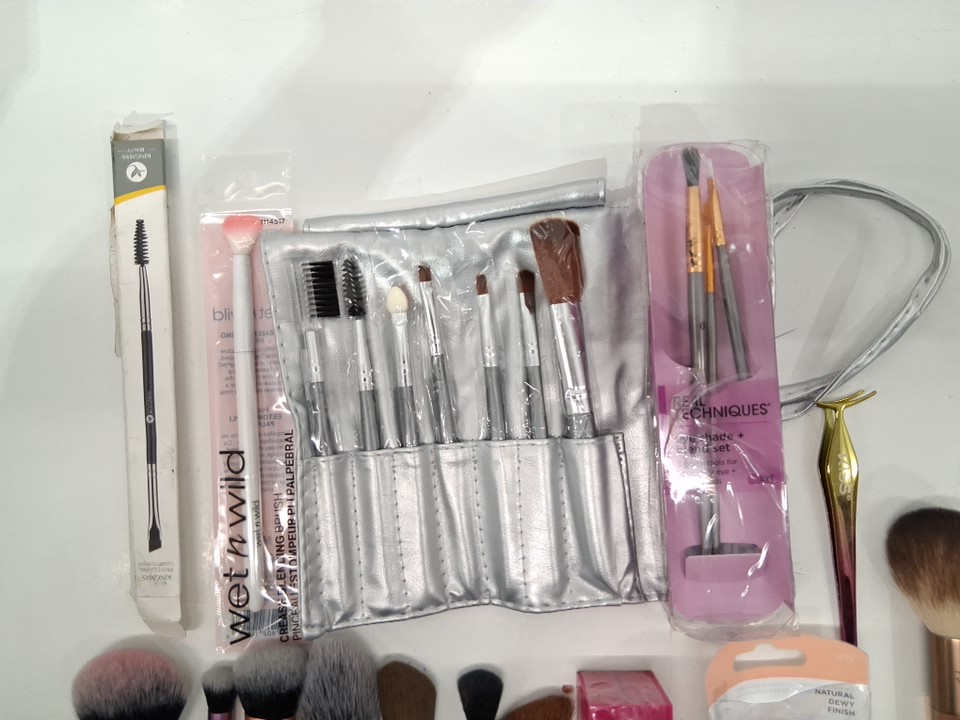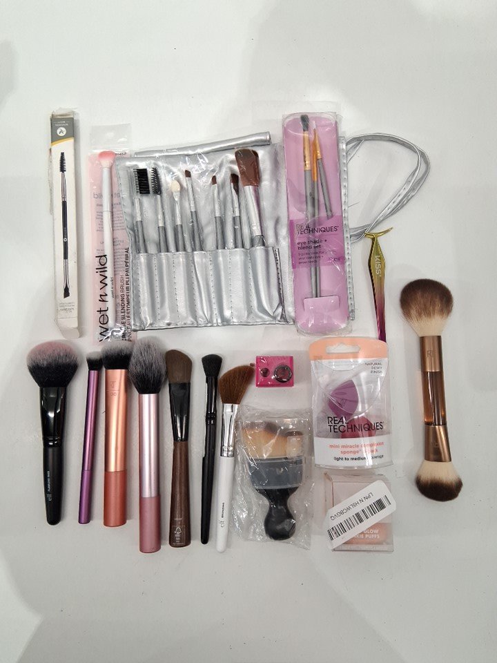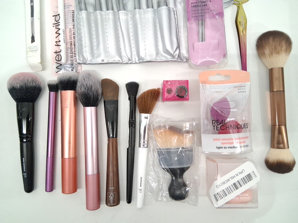 25+ assorted makeup brushes and face tools - assorted brands and types - face brushes / face sponges / eyeshadow brushes