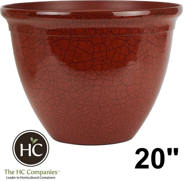 The HC Companies Tucson Decorative Round Planter - 20" - Chili Red Crackle