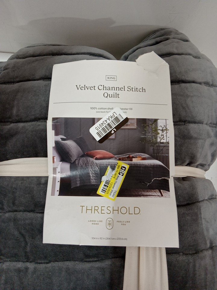 threshold Channel Stitch Velvet Quilt - king - dark grey