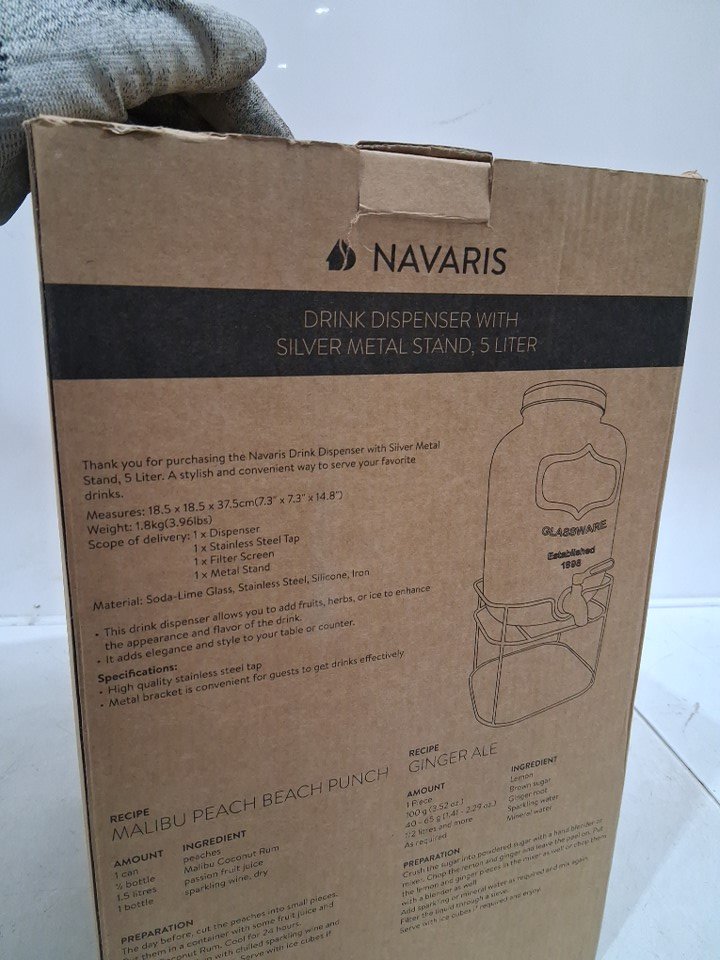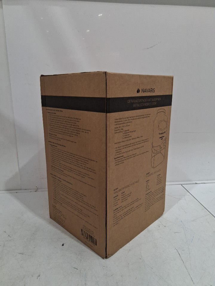 Navaris GLASS Drink Dispenser With Silver Metal Stand AND TAP - 5L - SILVER