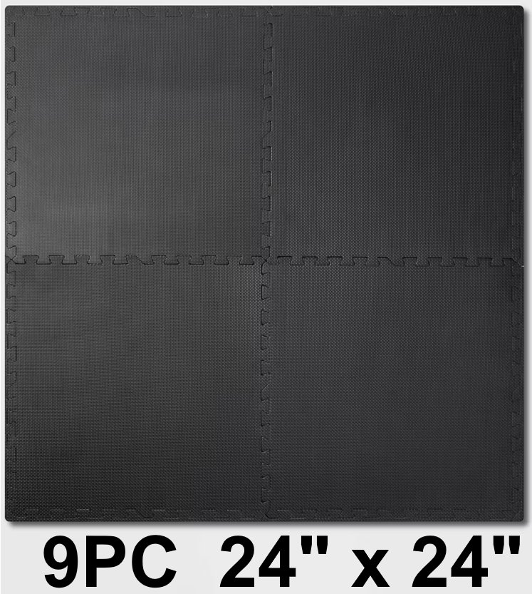 9PC ALL IN MOTION interlocking home gym floor tiles - 24" x 24" - black (model: 082-02-9439)
