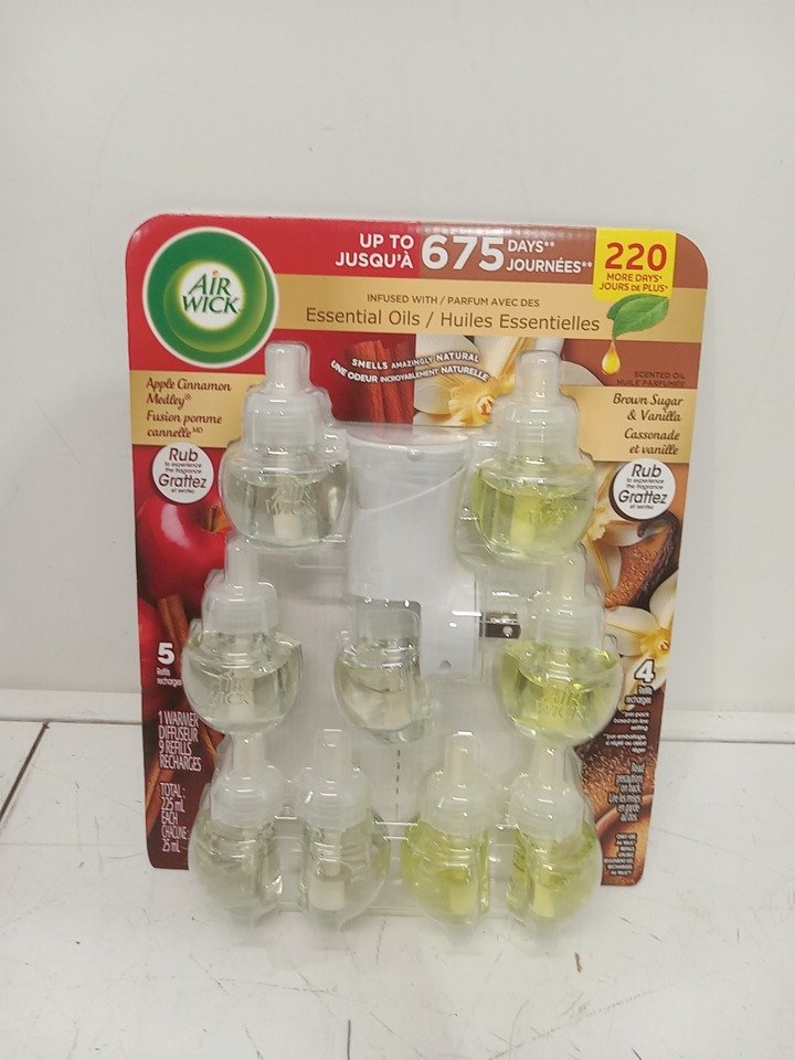 9PC Air Wick Scented Oil Plug-in - 1 Warmer And 9 Refills - Apple Cinnamon Medley and Brown Sugar & Vanilla
