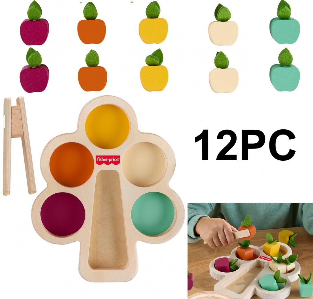 12PC Kids Fisher-Price Montessori Wooden Sorting Tree - Ages 3+ - multicolour (Model: JDM55)
