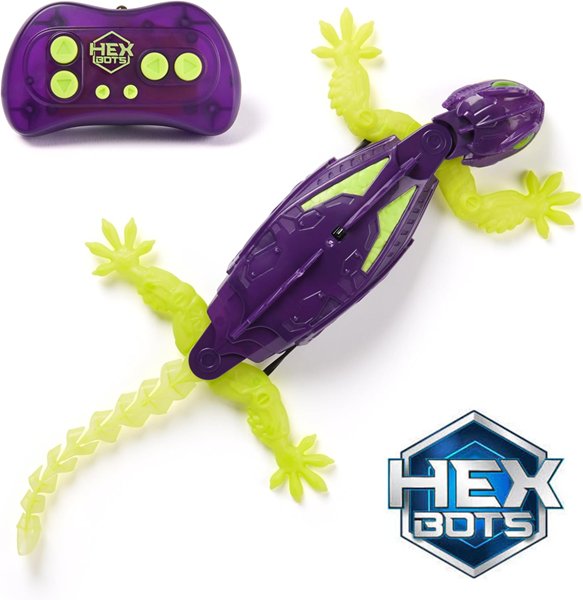hex bots glow in the dark gecko with official wall climber technology and remote - purple/green (model: 6075822)