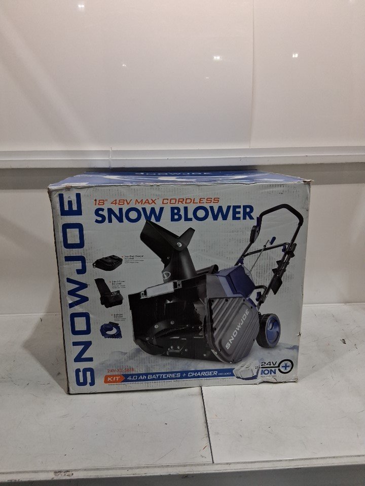 SnowJoe 18" Cordless Dual Battery Snow Blower - 48V, 4Ah, 10" CLEARING DEPTH - blue/black (MODEL: 24V-X2-SB18)