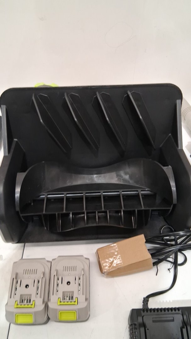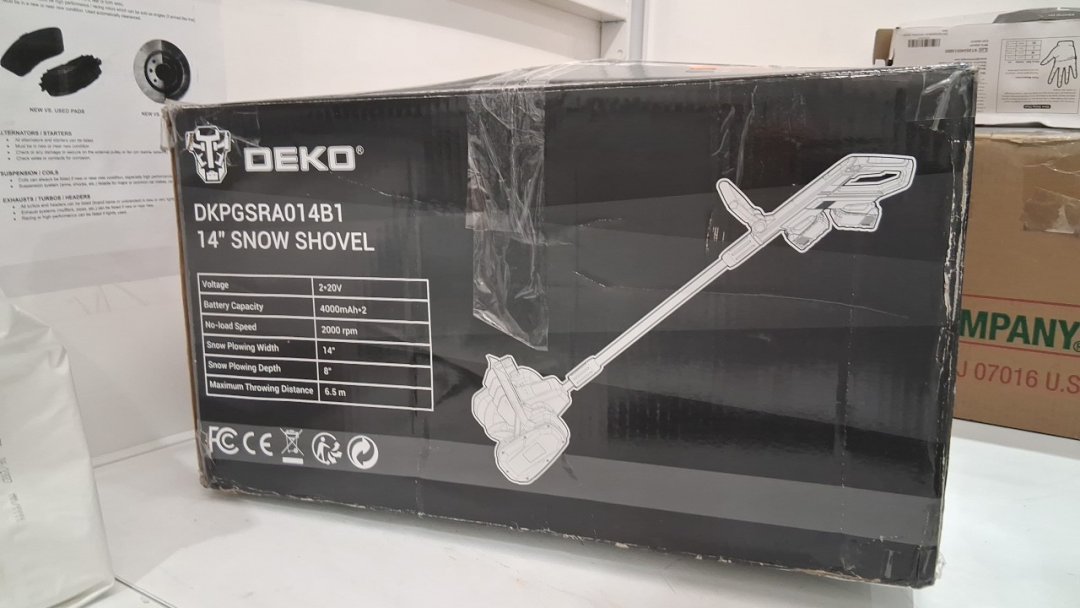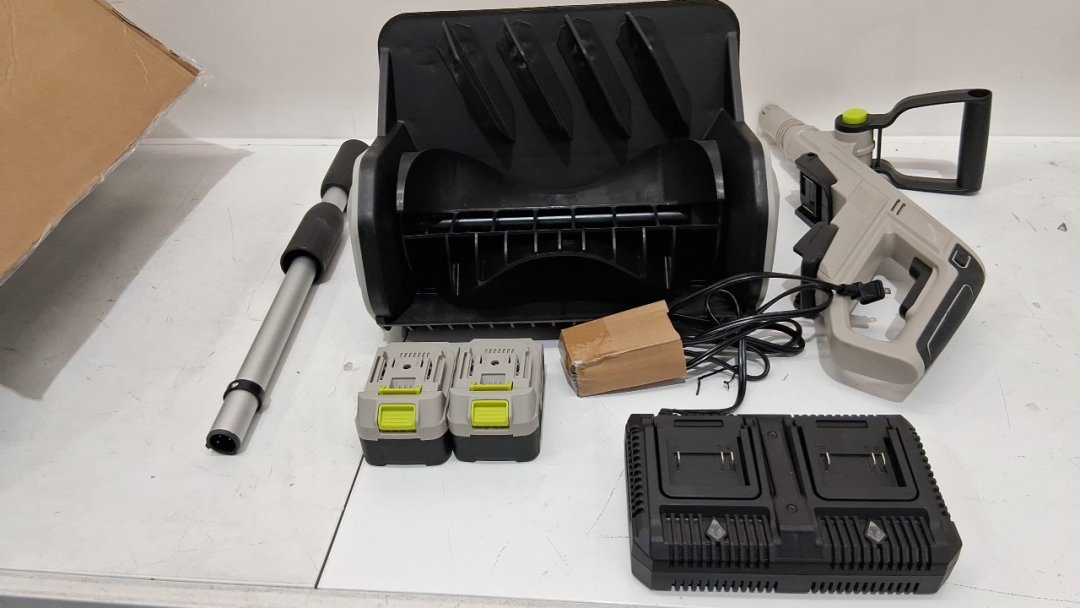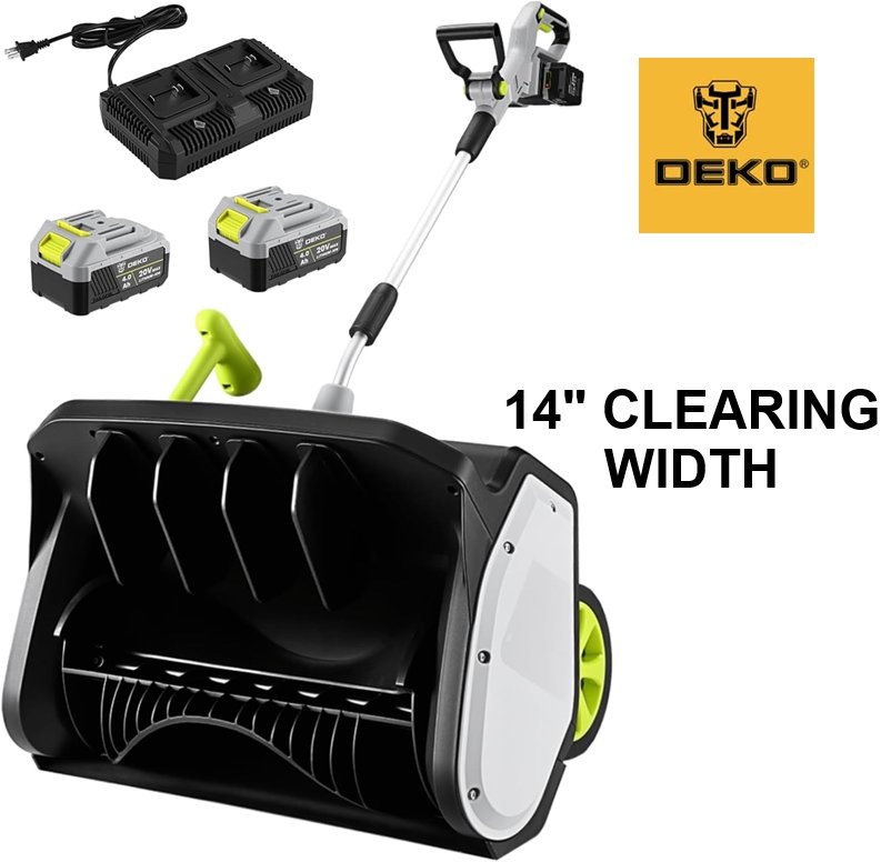 DEKOPRO Electric Snow Shovel with batteries and charger - 14" Clearing Width - Black/Green (Model: DKPGSRA014BL)