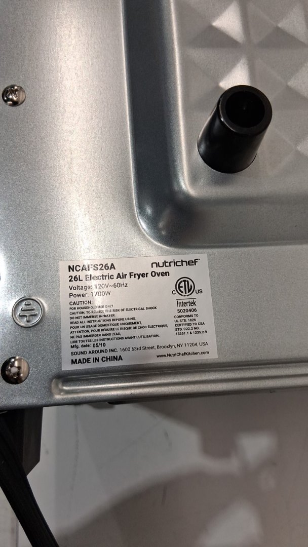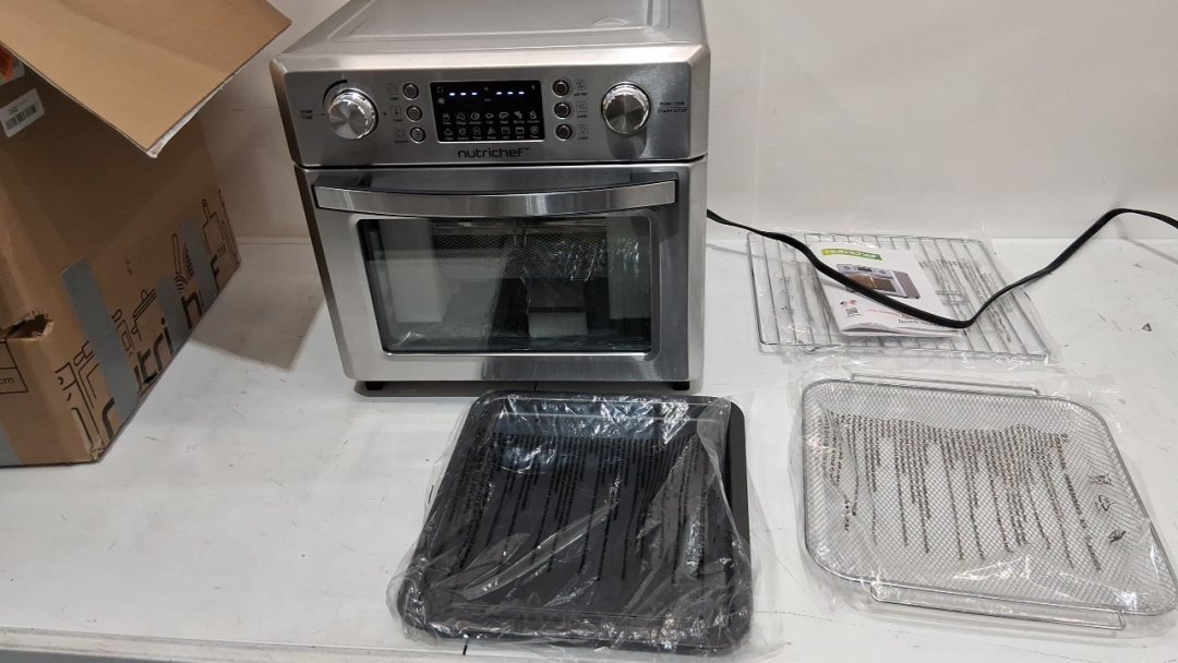 NutriChef Electric Air Fryer Oven 360° Rotating Feature AND 10 Digital Menu Presets - 26 QT - 1700W - SILVER - (MODEL: NCAFS26A)