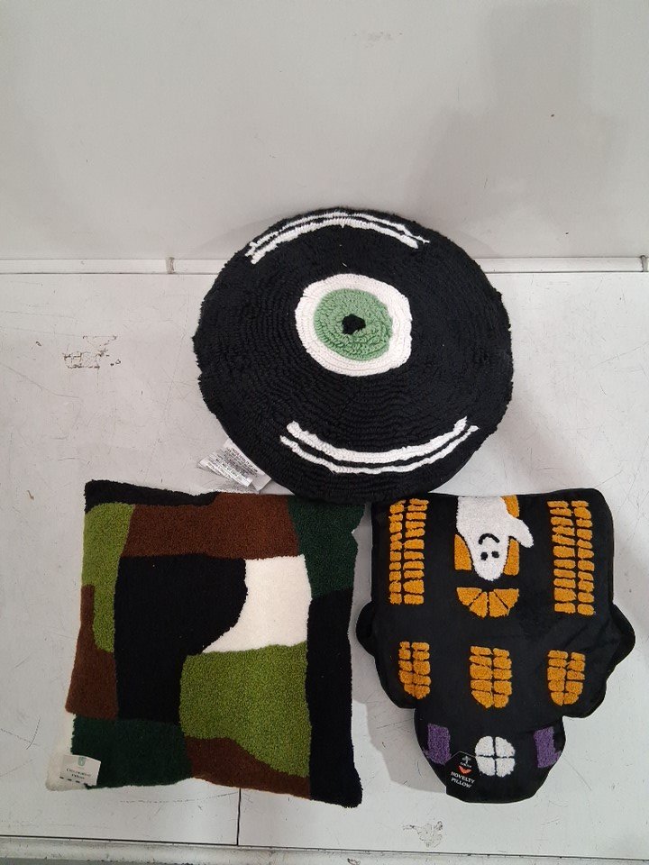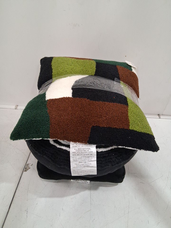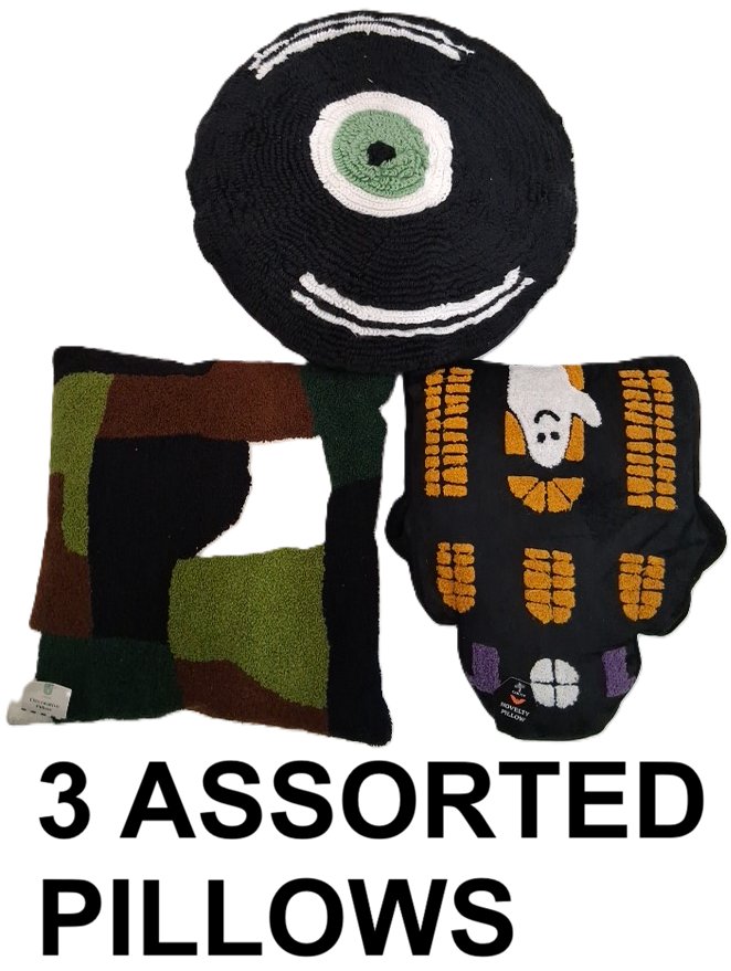 3 ASSORTED decorative throw pillows - various sizes - multicolor