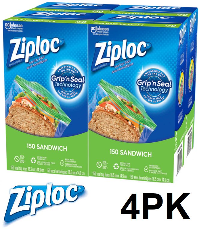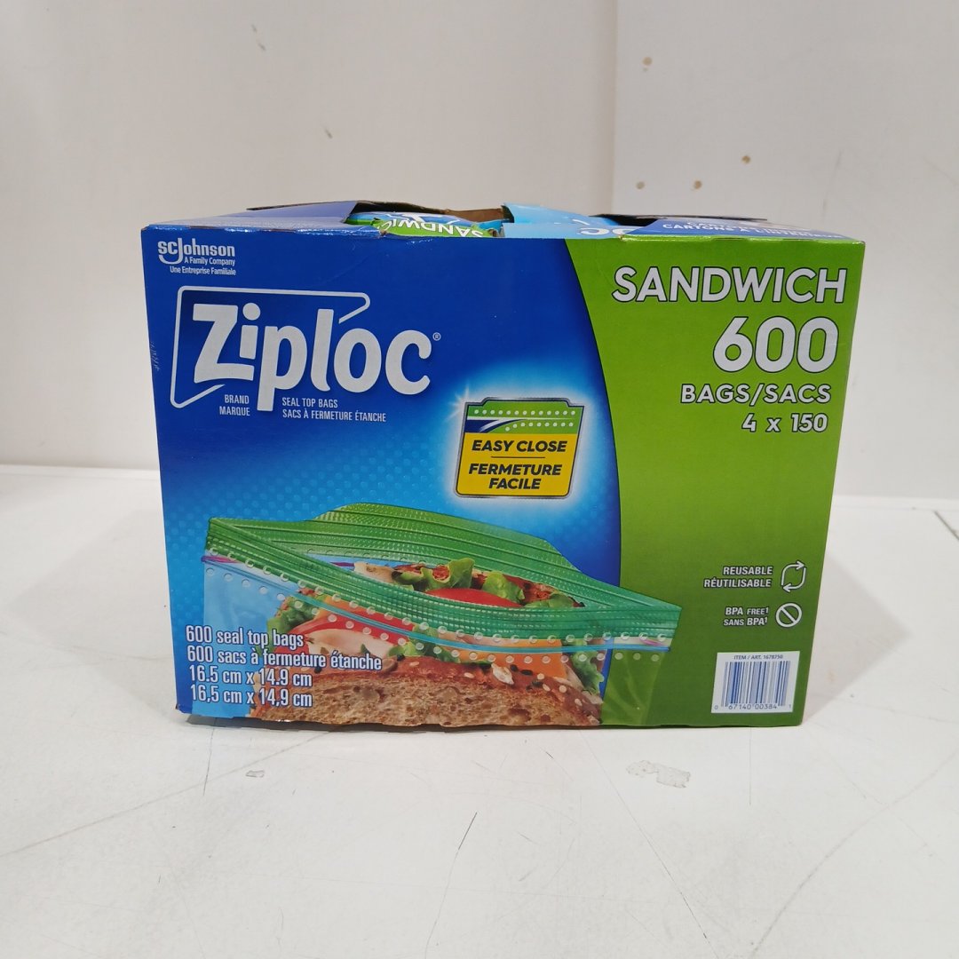 4PK ZIPLOC EASY-OPEN SEAL TOP SANDWICH BAGS - 150 PER BOX - (MODEL: 1678750)