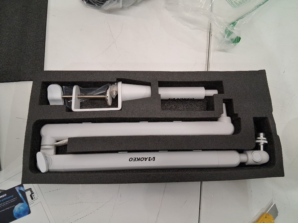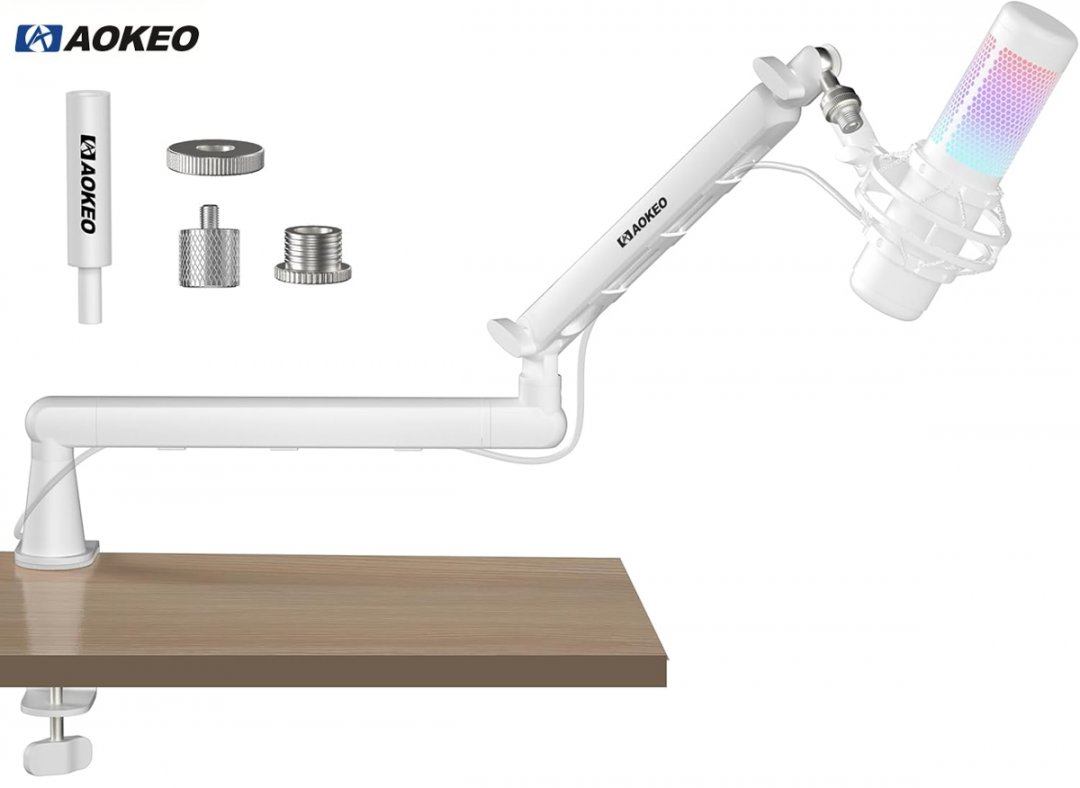 aokeo AK-55 boom arm microphone stand with clamp for table/desk with detachable riser - white (AK-55)