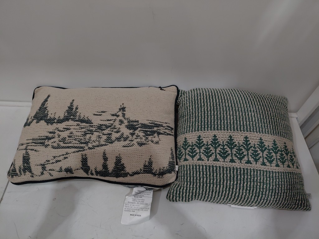 2 assorted decorative cottage core throw pillows - beige/green