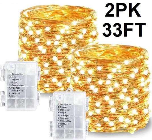 2pk led string lights, battery operated with 8 modes - 33ft - warm white