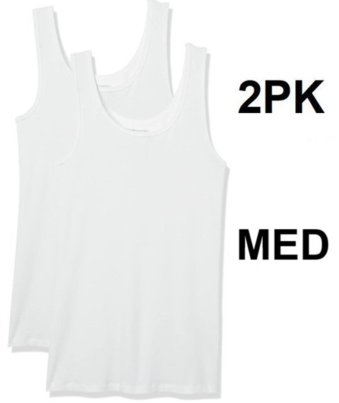 2PK WOMENS AMAZON ESSENTIALS SLIM FIT TANK TOPS - MEDIUM - WHITE