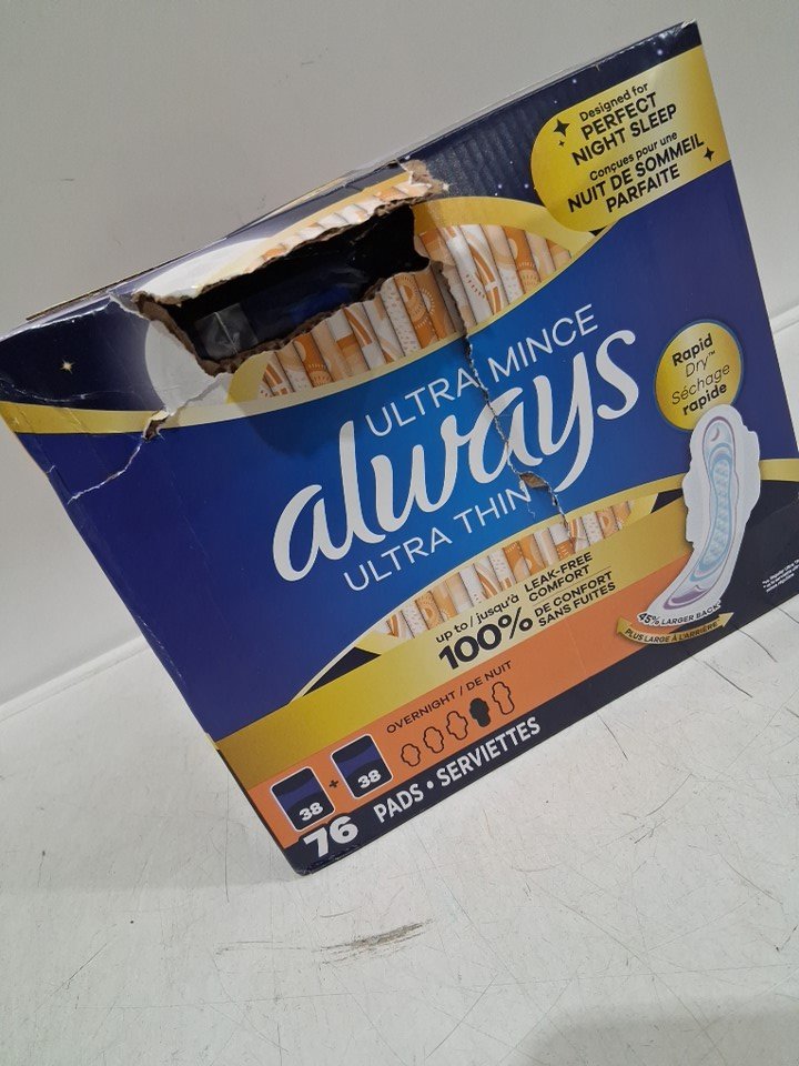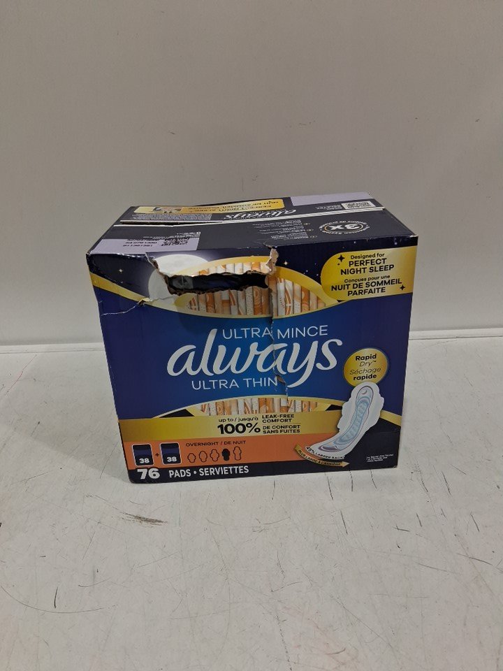76pk Always Ultra Thin Overnight Pads Unscented with Wings