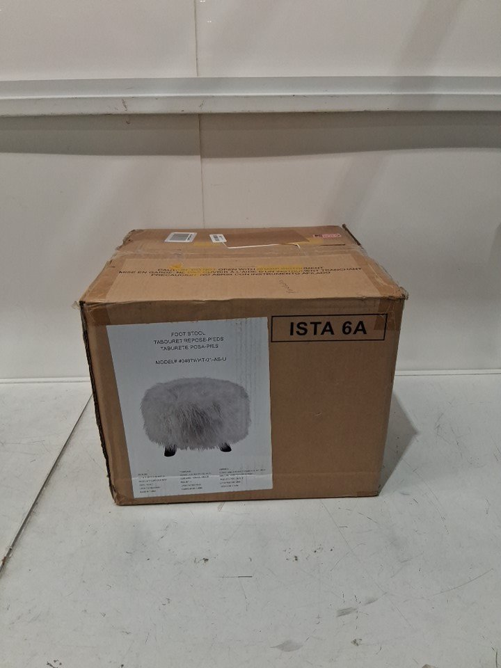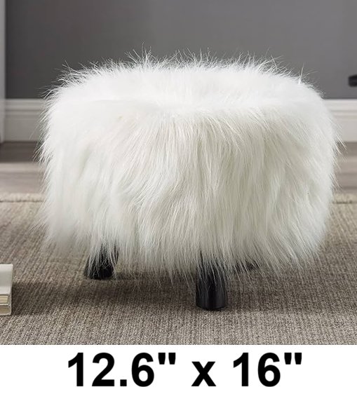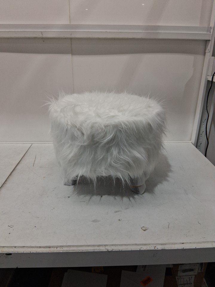 linon home decor faux fur foot stool-12.6"x16"-white/black