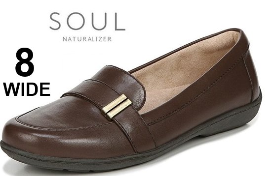 WOMEN'S SOUL NATURALIZER KENTLEY SLIP-ON LOAFERS -SIZE 8 WIDE- BROWN LEATHER