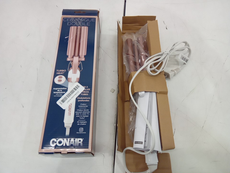CONAIR DOUBLE CERAMIC TRIPLE BARREL CURL STYLING WAVER FOR DEEP WAVES - 3/4" BARRELS - WHITE/ROSE GOLD - (MODEL: CD704C)
