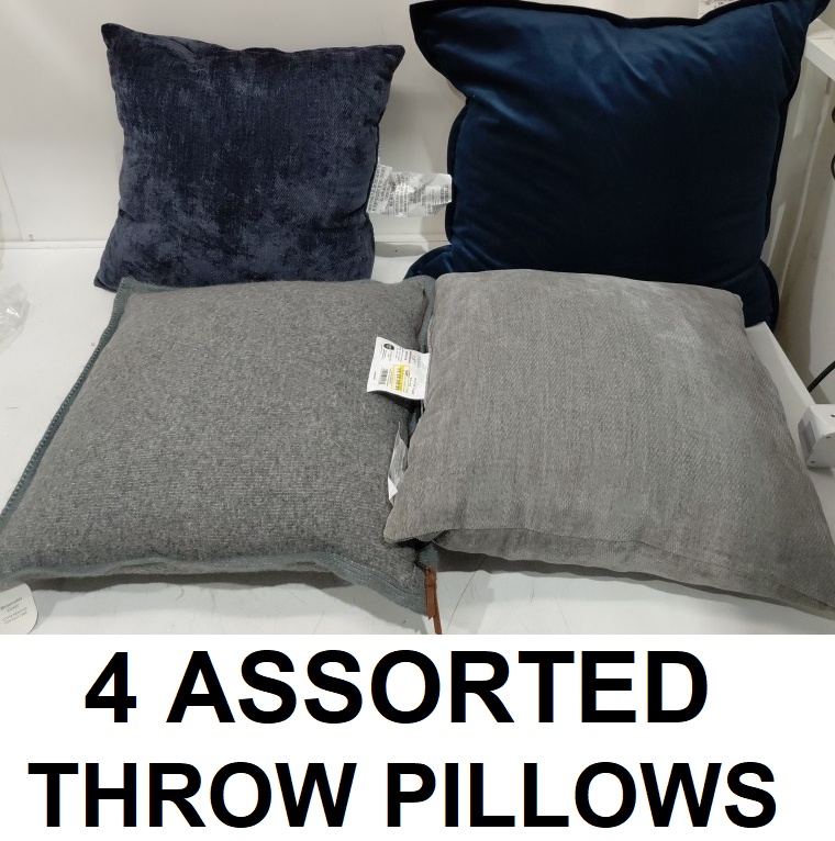 4 ASSORTED THROW PILLOWS - VARIOUS SIZES/COLOURS