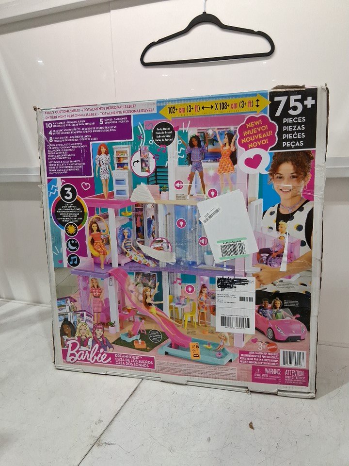 75PC Barbie Dreamhouse Dollhouse With Accessories & Wheelchair Accessible Elevator - pink/white (model: GRG93-DN2A)