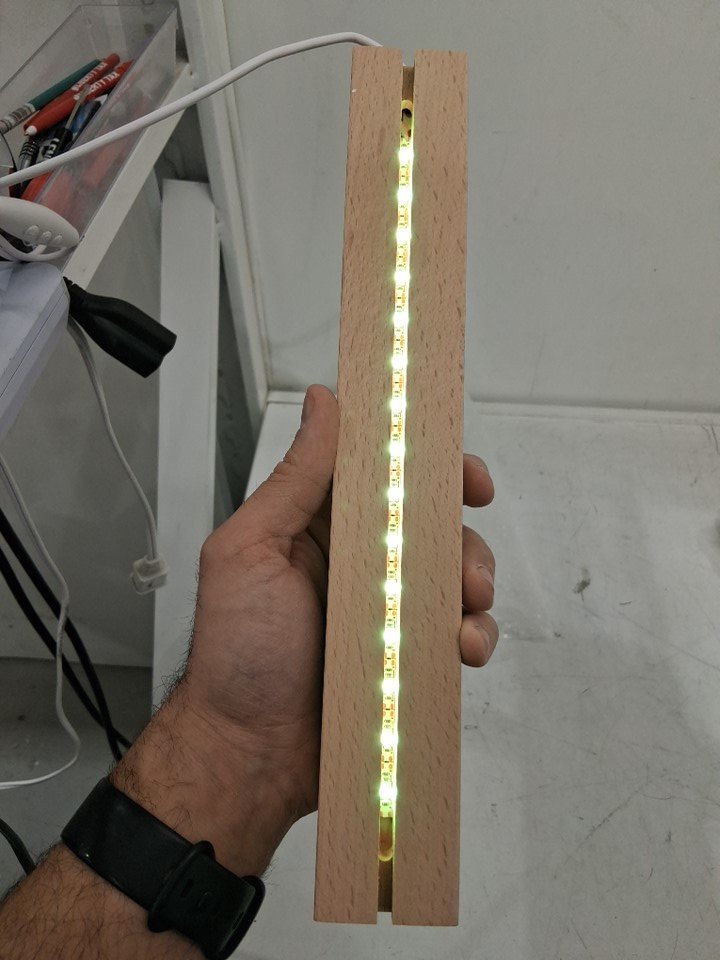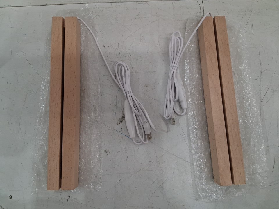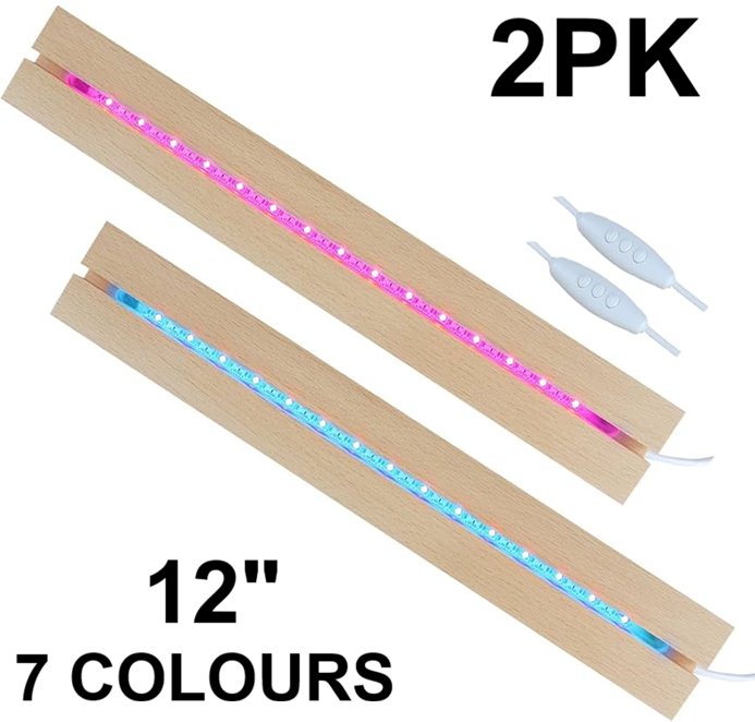 2PK Rectangle Wooden LED Lights Display Bars with USB-A Connection - 7 LED Colours - Natural Wood