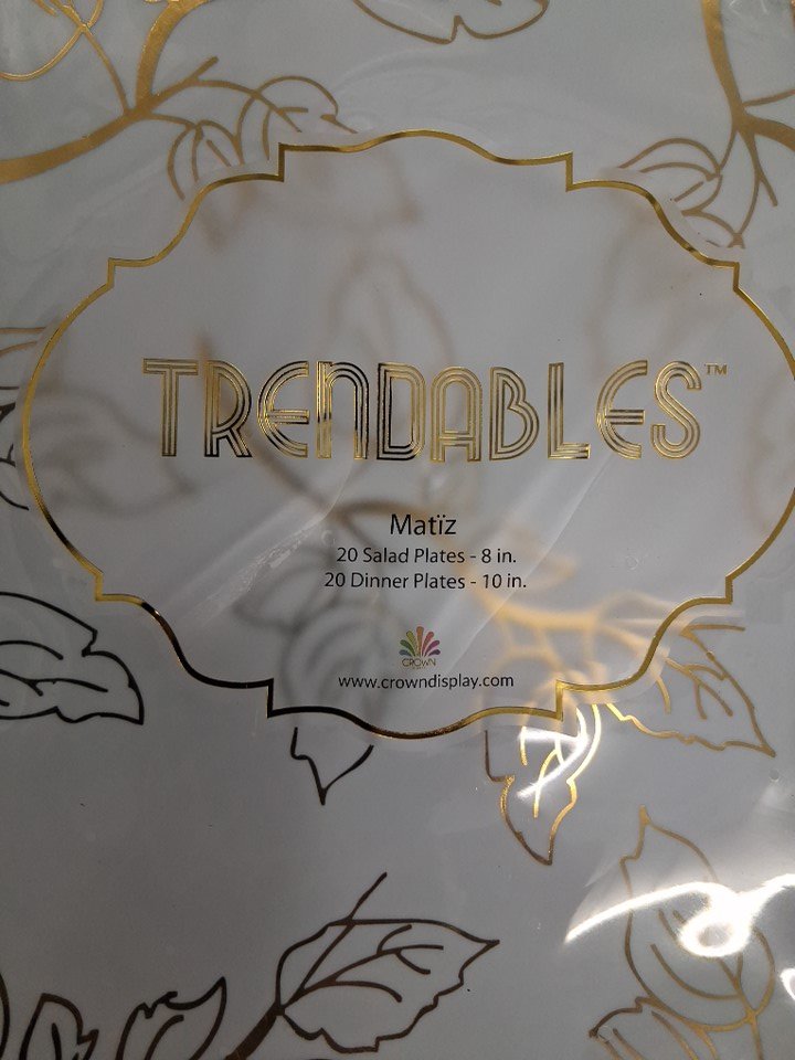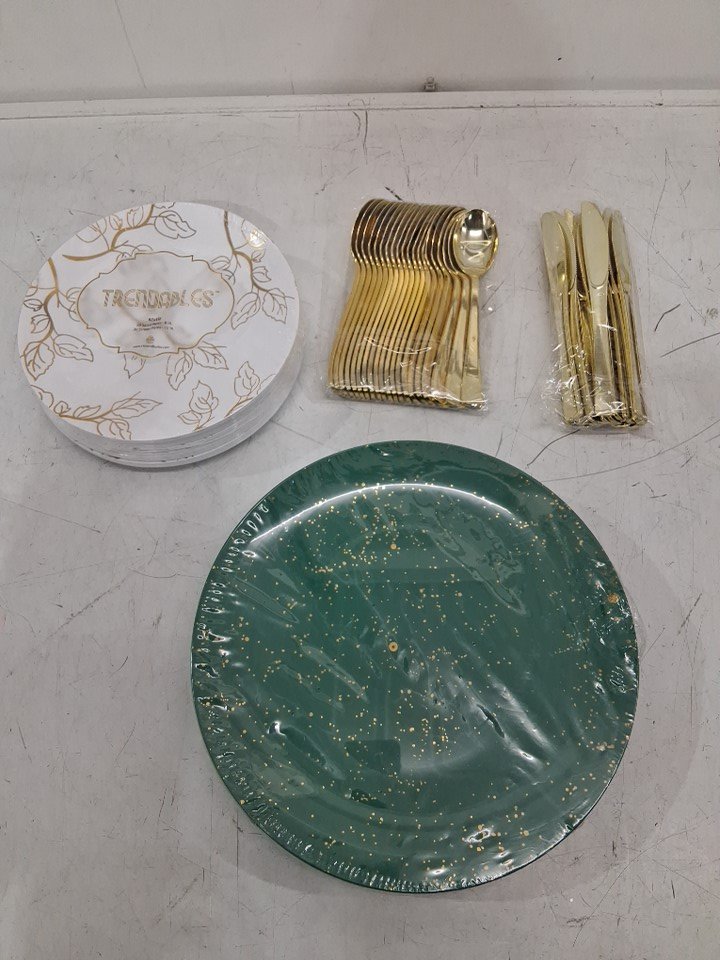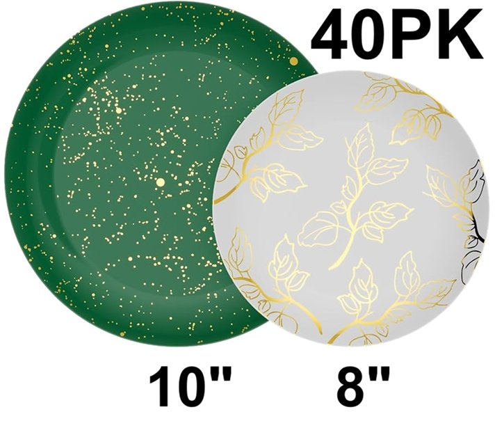 40PK Trendables Disposable Dinnerware Combo - 20 10" Large Dinner Plates & 20 8" Salad/Dessert Plates - Green/White/Gold