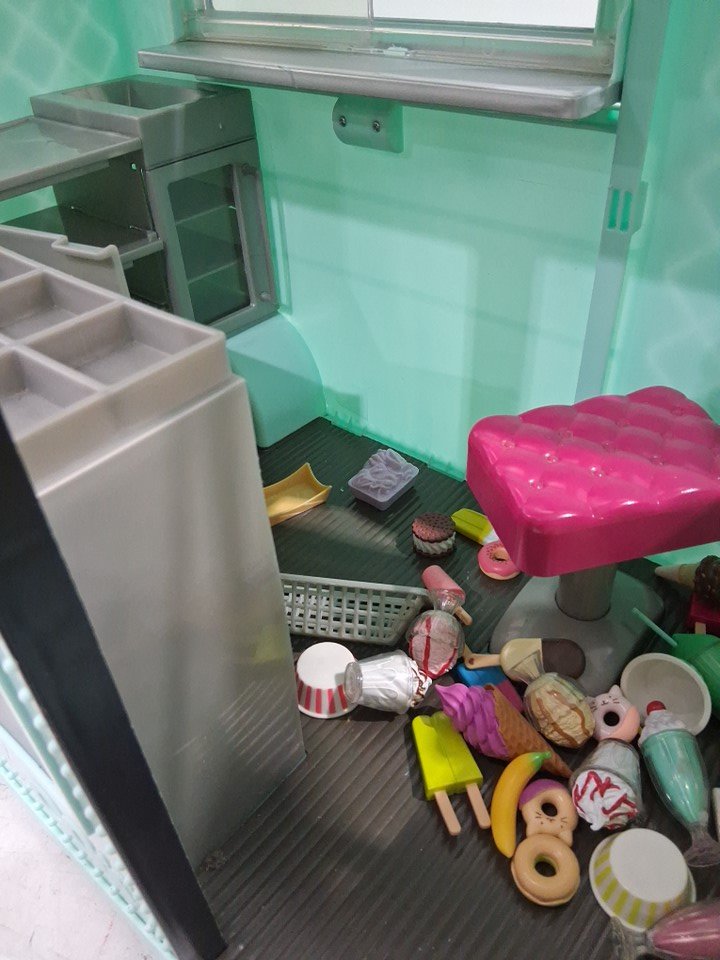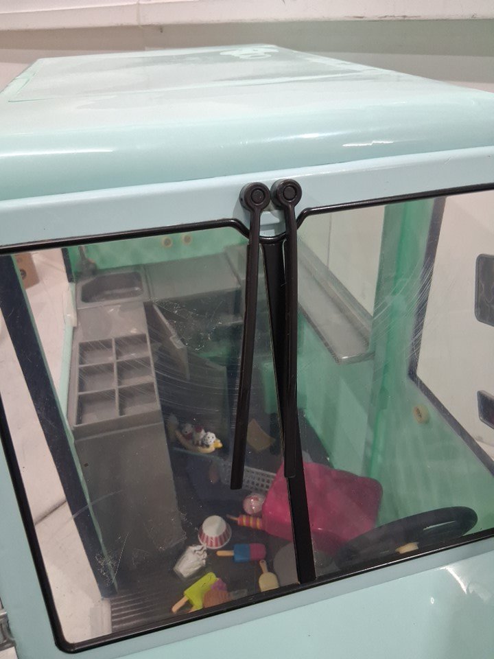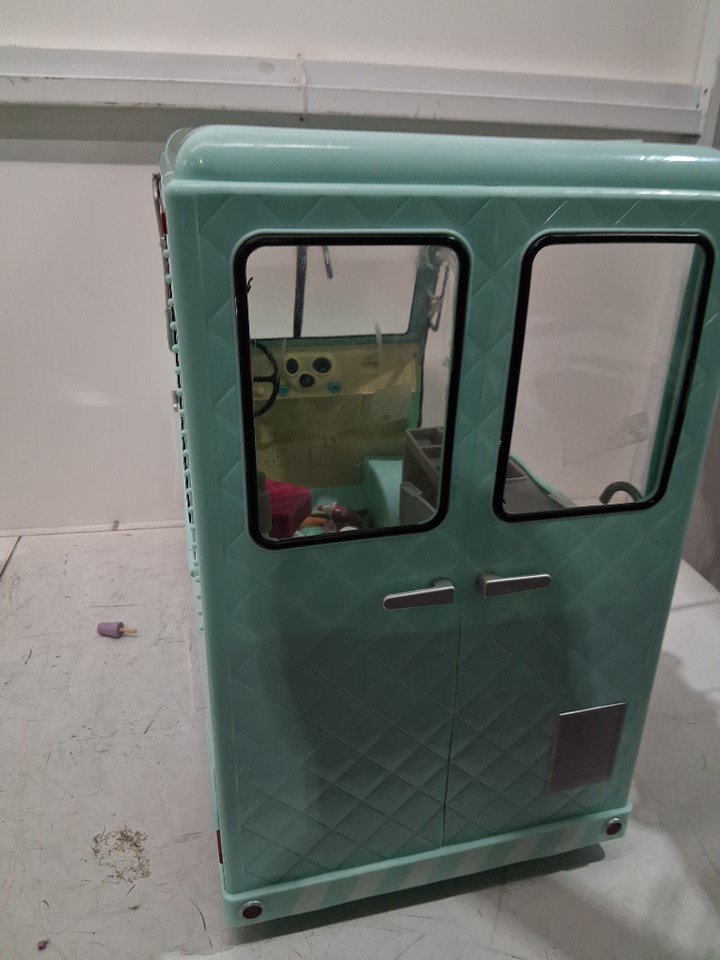 Product is missing a considerable amount of the accessories also has some scuffs scratches and marks. Product was tested for power and lights work but and truck play's the ice cream jingle but wipers do not work.