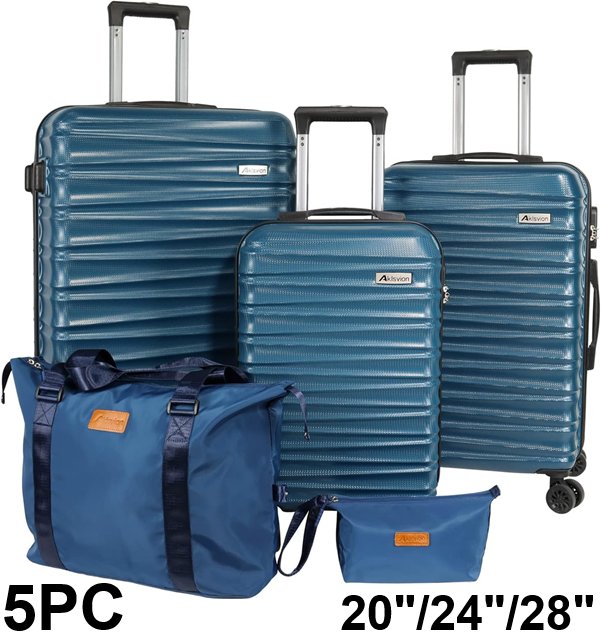 5PC AKLSVION durable rotating luggage set - 20"/24"/28" - NAVY BLUE (model: ak-01)