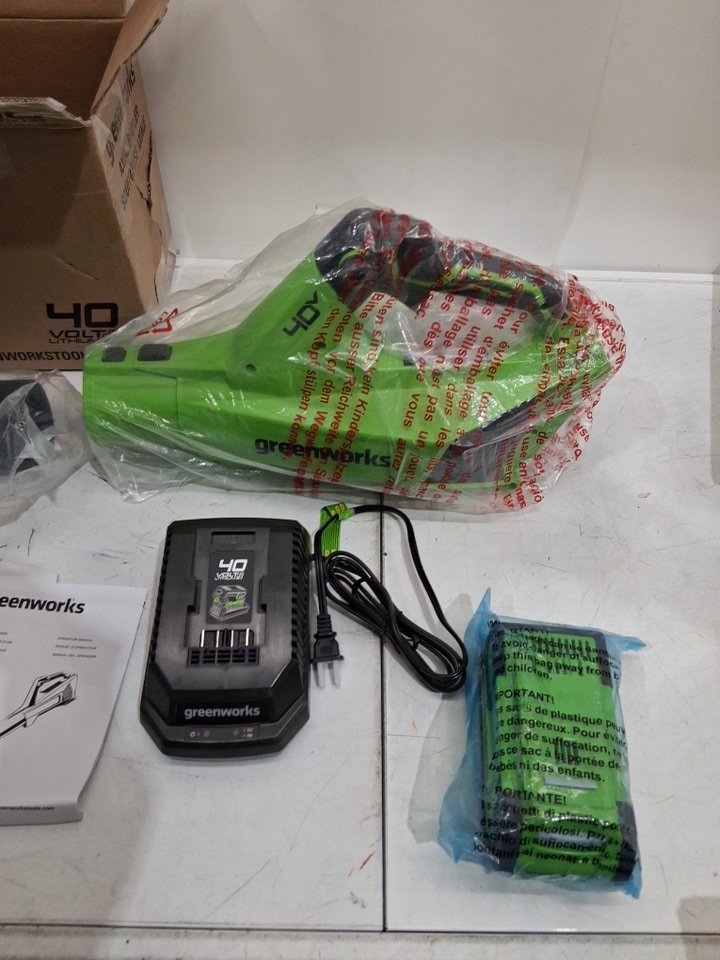 GREENWORKS CORDLESS JET LEAF BLOWER WITH BATTERY & CHARGER - 40V / 125MPH / 450CFM - GREEN (MODEL: blf346)