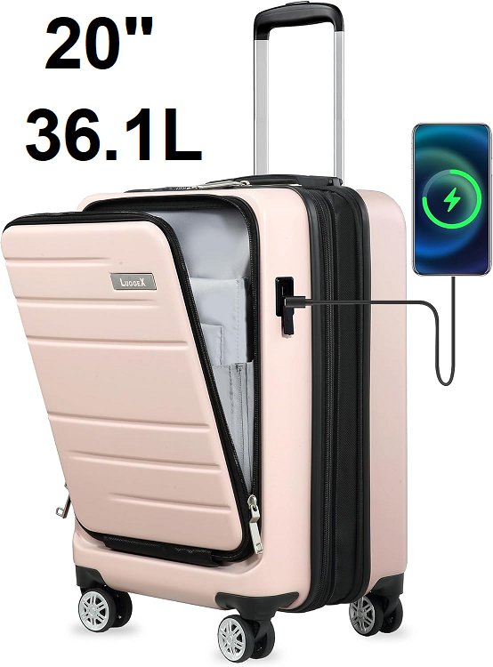 LUGGEX Carry On Luggage airline TSA approved - 20" 36.1L - pink