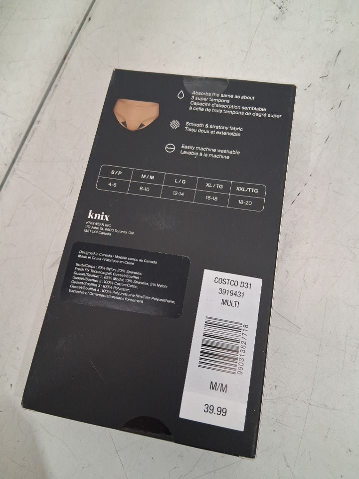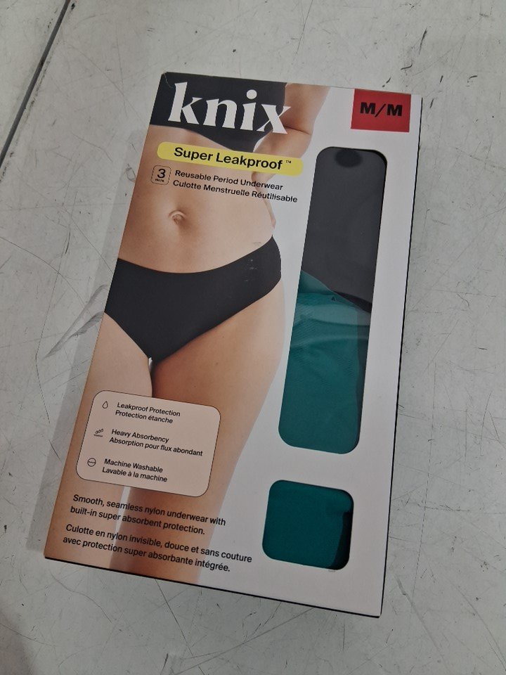 3PK womens knix Super Leakproof Reusable Period Bikini Underwear- medium - black/blue/beige