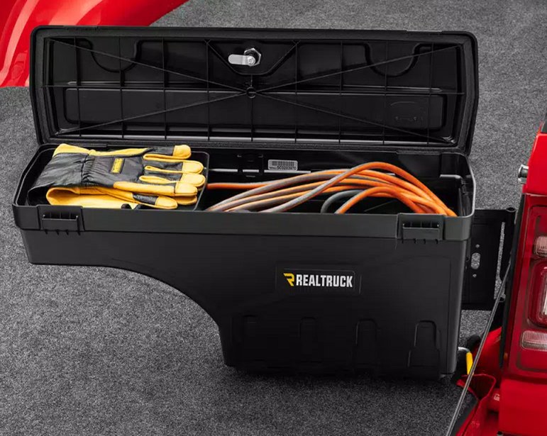 realtruck undercover swingcase truck bed toolbox *see compatibility in notes - 29" x 15" x 8" - black (model: sc105d)